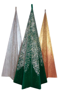 ЗВЕЗДОЧКА-свеча у основания имеет форму шестиконечной звезды.Диаметр у основания 10,0 см .,высота свечи 20,0см. Свеча оформлена в виде ёлочки с блестящим снегом. |