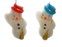 Свеча в виде снеговика со шляпой и метлой,возможны различные цвета оформления. Размеры 6,5х5,5х12 см. |
