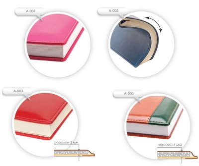 Напоминаем, что у нас Вы можете заказать ежедневники в 4 типах обложки: А-001 - твердая, А-002 - мягкая (гибкая), А-003 - с поролоном 3 мм, А-005 - с поролоном 5 мм. Выбирайте! Будьте индивидуальны! |