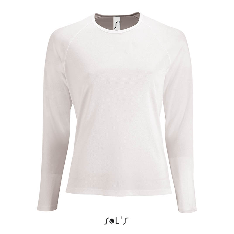 Женская спортивная футболка с длинным рукавом SPORTY LSL WOMEN. Круглый вырез. Кроеный трикотаж. Приталенная модель. Горловина обработана бейкой. 100% воздухопроницаемый («дышащий») полиэстер Mesh 140 г/м