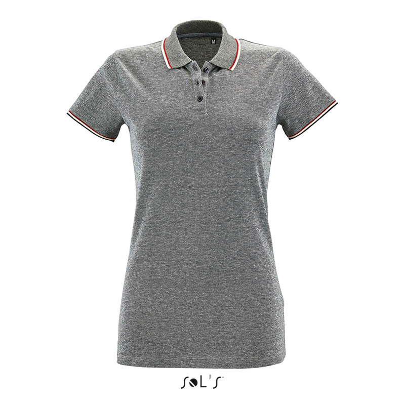 Женская меланжевая рубашка поло PANAME WOMEN. Короткий рукав. Планка с 3 пуговицами. Кроеный трикотаж. Приталенная модель. Воротник и края рукавов из резинки в контрастную полоску Хлопок пике 180 г/м