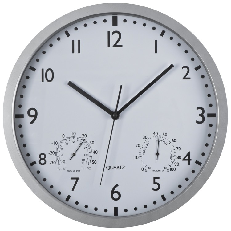 Классические настенные часы с термометром и гигрометром. Циферблат можно легко вынуть, чтобы нанести рекламную печать.