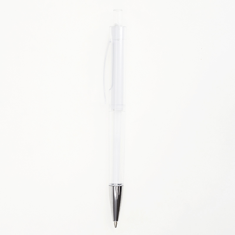Пластиковая шариковая ручка, механизм – кнопка, прозрачный цветной корпус, широкий клип, хромированный наконечник. 140 мм.