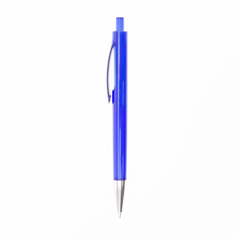 Пластиковая шариковая ручка, механизм – кнопка, прозрачный цветной корпус, широкий клип, хромированный наконечник. 140 мм.