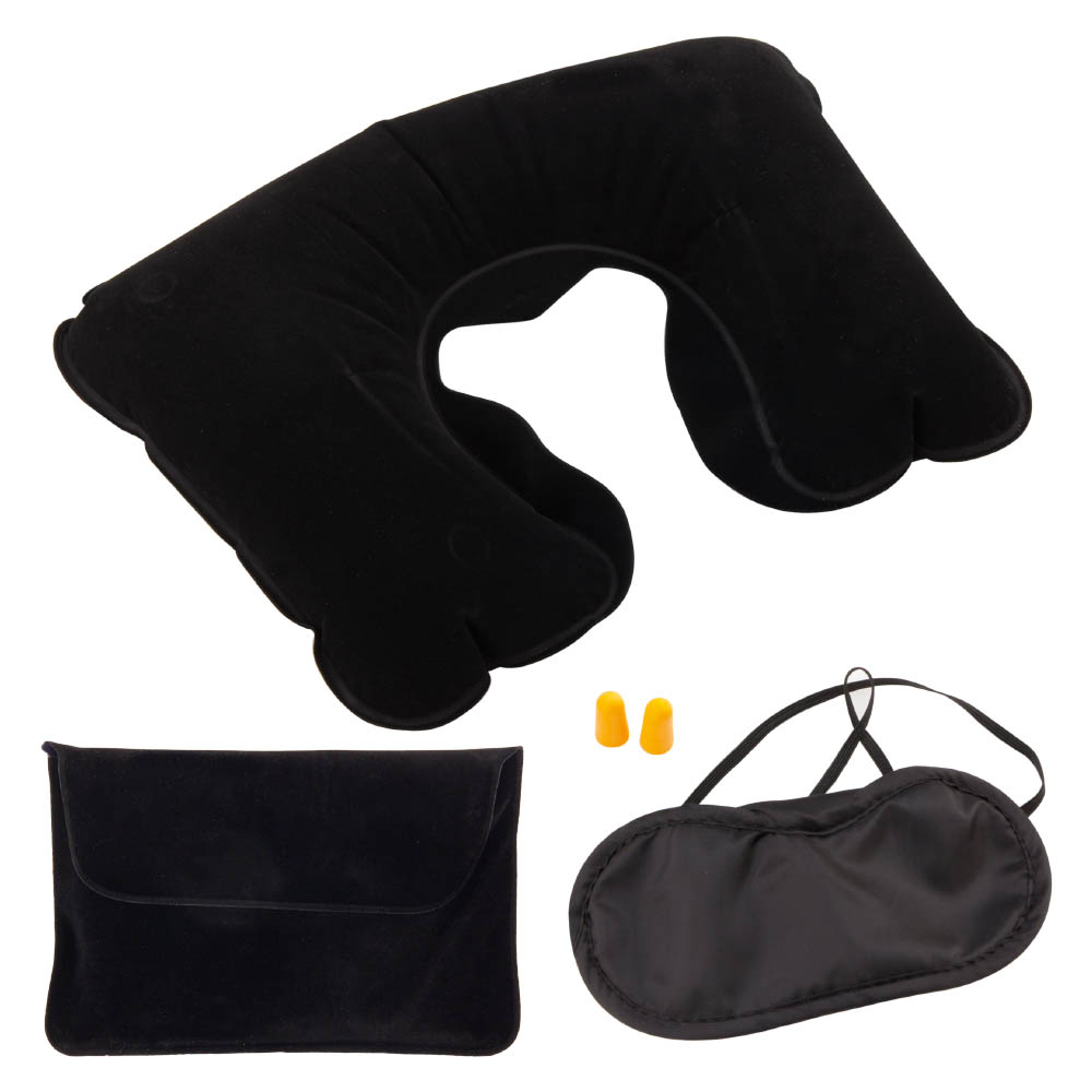 Надувная подушка, беруши для ушей и маска для глаз