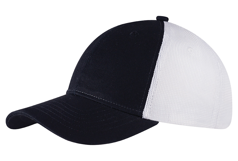 Передние панели и козырёк из 100% хлопка, боковые и задние панели из мягкой нейлоновой сетки, для регулировки размера используется застежка на липучке, ламинированные передние панели