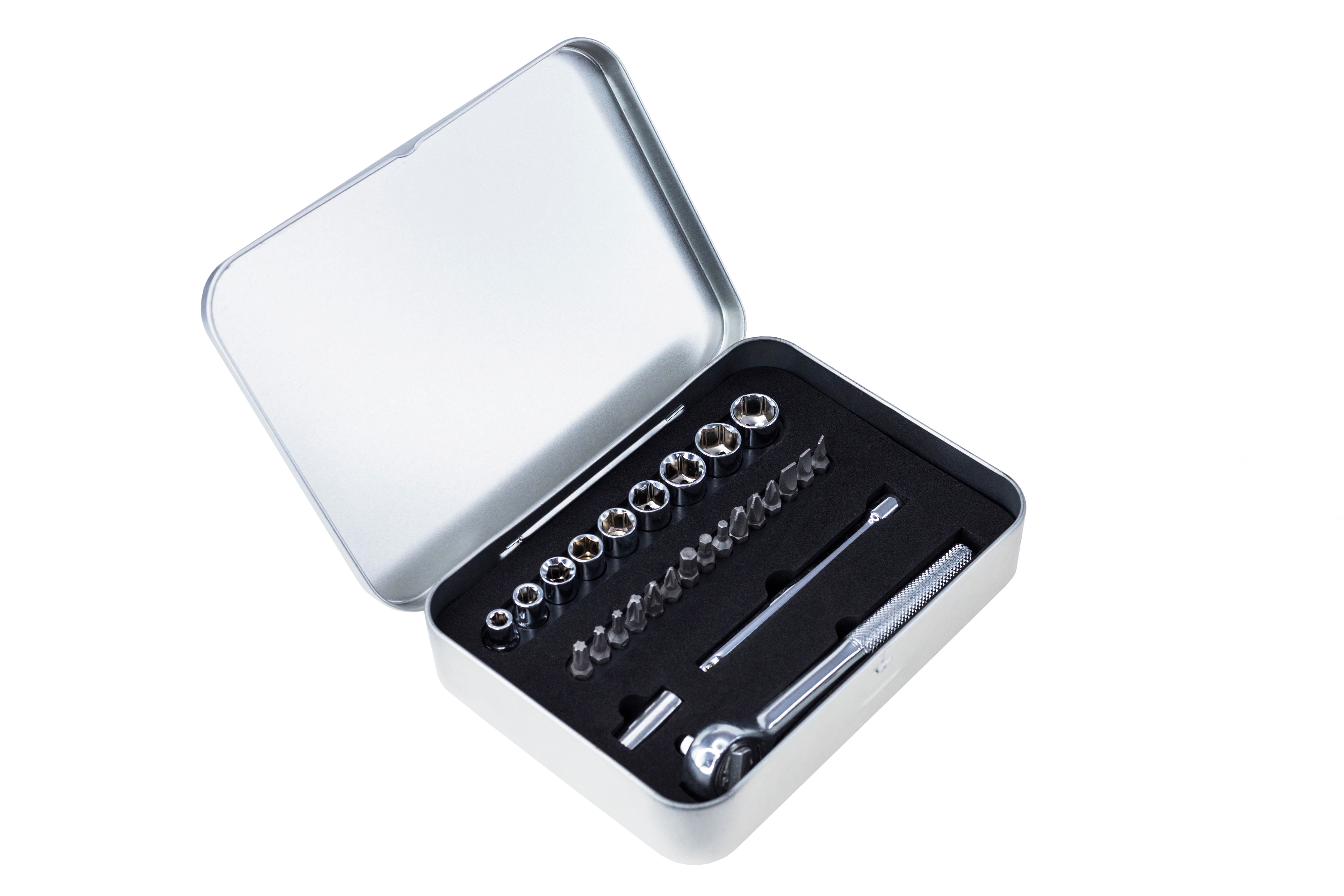 Компактный набор отверточных бит и гаечных головок с трещоткой. В наборе: