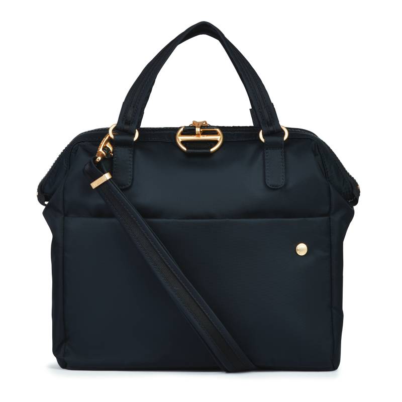 Элегантная сумка Citysafe CX Satchel Handbag - это инновационные функции защиты от кражи защищают ваши ценные вещи, а в дизайне, неподвластном времени, есть место для вашего телефона, кошелька, косметички, наушников и даже планшета. Сумка оснащена 6 запатентованными технологиями защиты: TurnNLock security hook (карабин фиксатор на неподвижных предметах); Carrysafe® slashguard straps (вшитые в лямку стальные стропы) ; RFIDsafe™ blocking pockets & material (защитная ткань от RFID уязвимости); Roobar™ Style locking system (центральный замок для молний); Secure zip tab (специальная дуга фиксирующая язычок молнии); eXomesh® slashguards (вшитая в ткань стальная сетка).