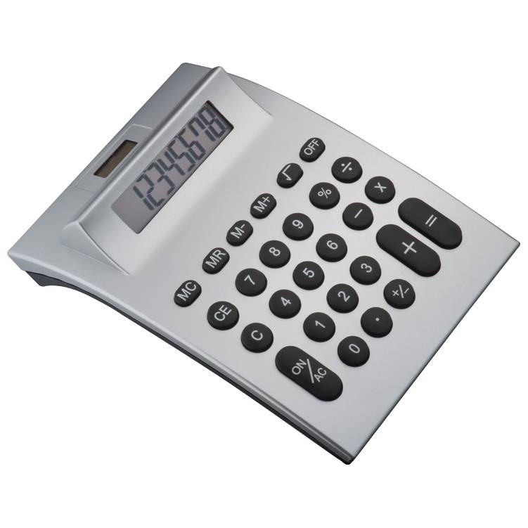 Большой офисный калькулятор с оригинальным 8 цифровым дисплеем и резиновыми кнопками. Новаторство дизайна и эргономичность кнопок присваивают ему имя - наиболее использаваемого калькулятора. Логотип разместим под дисплеем.