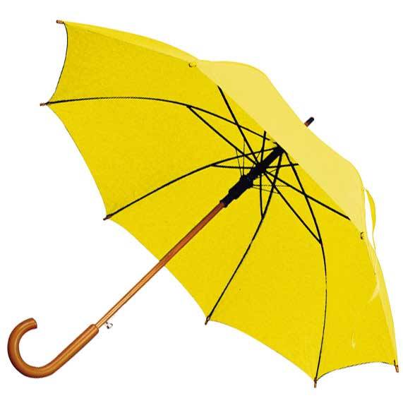 Зонт-трость полуавтомат, с деревянной изогнутой ручкой. Диаметр купола: 108 см