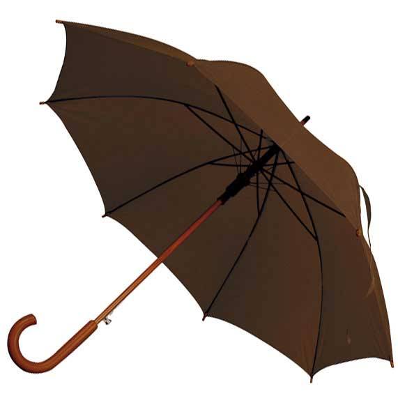 Зонт-трость полуавтомат, с деревянной изогнутой ручкой. Диаметр купола: 108 см