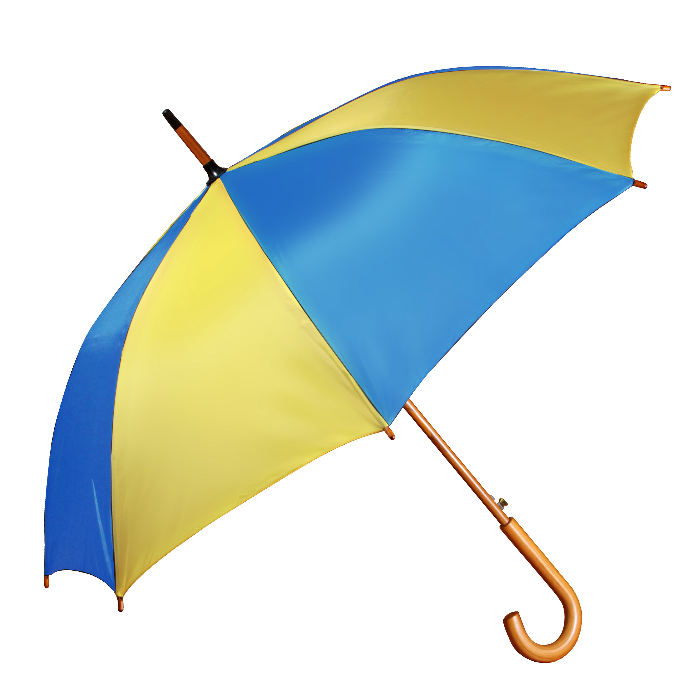 Зонт-трость полуавтомат, с деревянной изогнутой ручкой. Диаметр купола: 108 см
