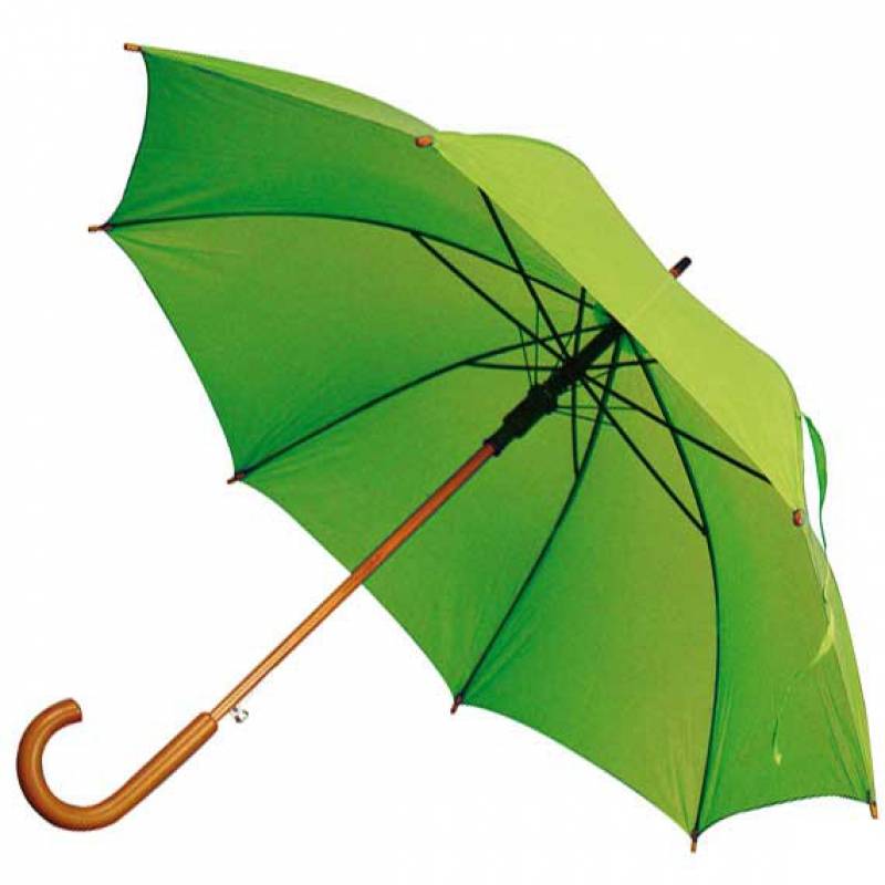 Зонт-трость полуавтомат, с деревянной изогнутой ручкой. Диаметр купола: 108 см
