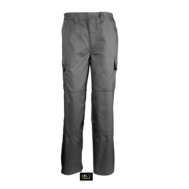Рабочие брюки SOL’S ACTIVE PRO. Материал: 65% полиэстер - 35% хлопок .9 карманов, включая внутренний карман и карман для мобильного телефона, клапаны на карманах со светоотражающими лампасами, 2 вставки для ношения авторучек, застежка на молнии черного цвета, специальная этикетка для указания персональных данных вышитая внутри.