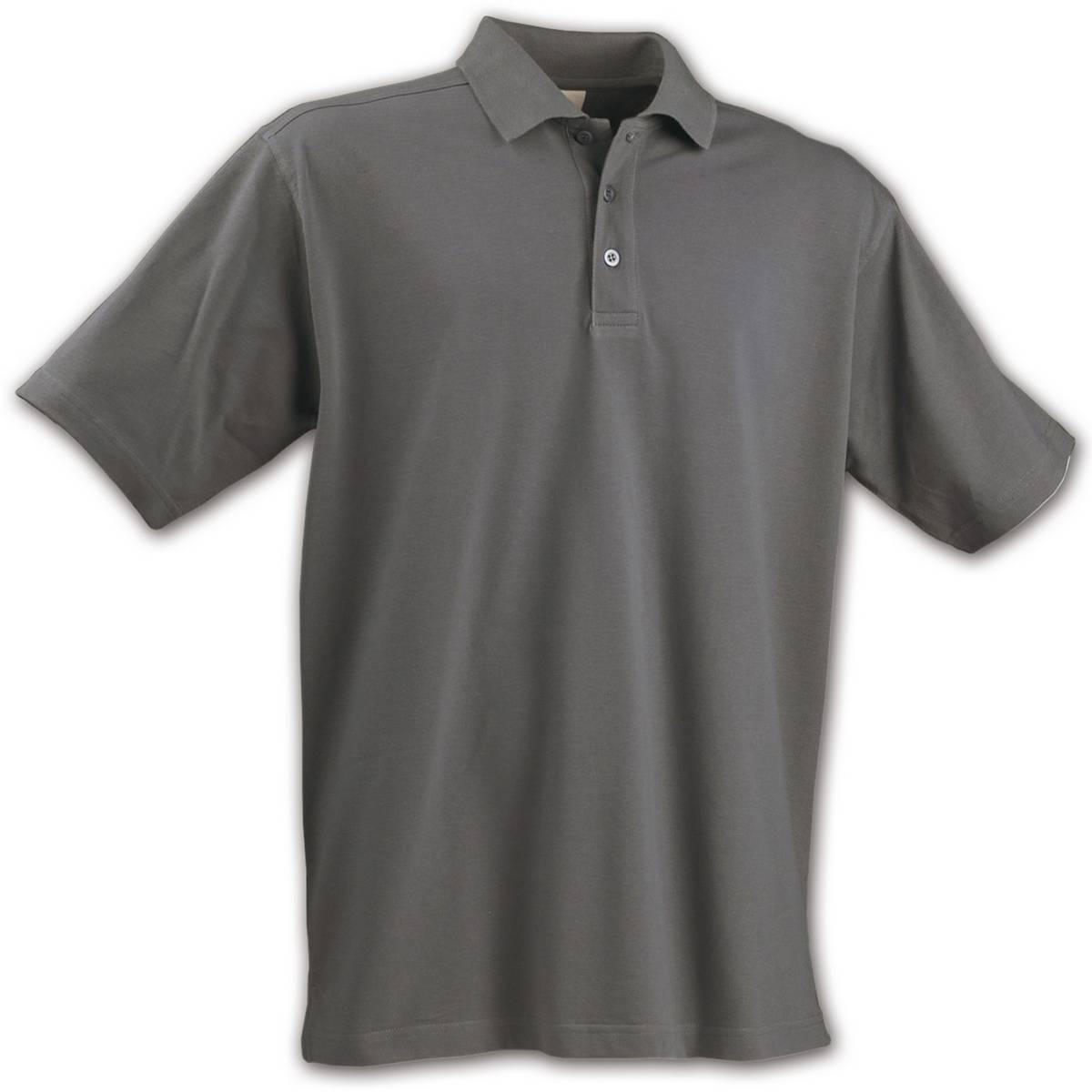 Классическое мужское поло-пике с нижними разрезами по бокам и тремя пуговицами под цвет материала.