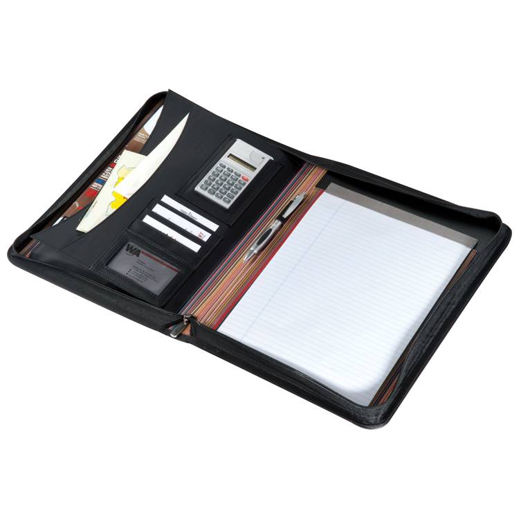 Папка для конференций из ПУ на молнии. Внутри Вы найдете калькулятор и блокнот на 30 страниц
