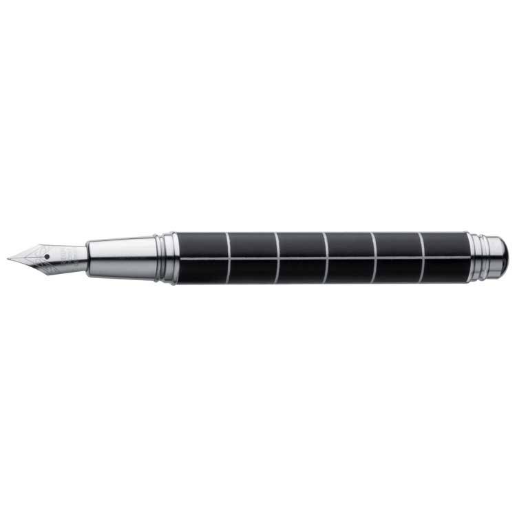 Письменный набор из двух ручек. Шариковая с поворотным механизмом и перьевая. Набор доставляется в элегантной черной коробочке с металлическим шильдом.