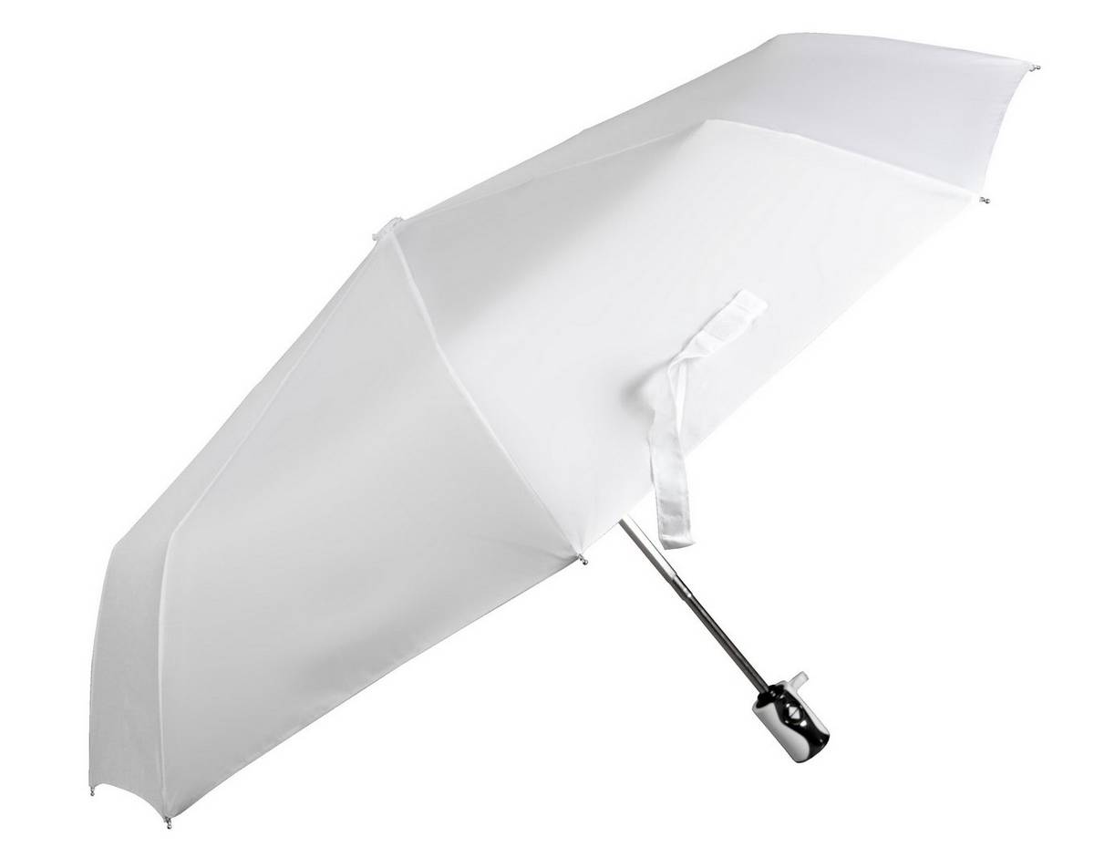Складной автоматический зонт, с пластиковой ручкой в цвет полотна. Диаметр купола: 98 см