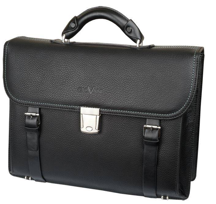 Портфель из итальянской кожи "эксклюзив" от ТМ GioVani, с металлические ножками для защиты нижней части от повреждений. Замок на язычке крышки и двумя ремнями по с застёжками. Размер изделия: h 300 х 400 мм .