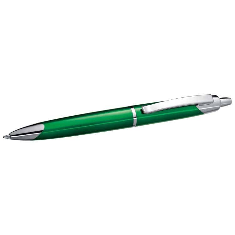 Элегантная ручка в классическом стиле. Цветной корпус украшен хромированными элементами. Ручка имеет большой синий стержень. Рекламный логотип разместим на корпусе письменного прибора.