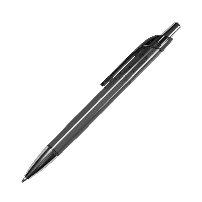 Яркая шариковая ручка из полупрозрачного глянцевого цветного пластика, с серебристым носиком.
