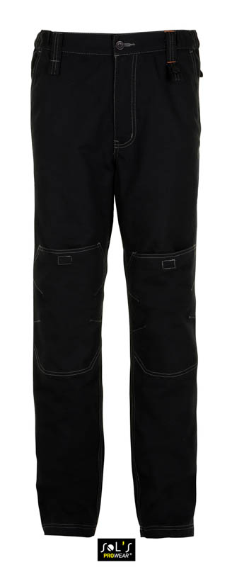 Брюки рабочие SOL'S SECTION PRO – Профессиональная рабочая одежда. Идеально подходит для строительных бригад, работников автосервисов, складских работников, работников сервисных служб и служб доставки. Брюки сочетают высочайшую износостойкость (плотность- 300 г/м кв., смешенная ткань 65% полиэстера и 35% хлопка) и функциональность. Пояс полуэластичный с петлями для ремня. 6 объемных карманов (2 задних навесных, 2 передних, 2 на коленях – для съемных наколенников) + петельки с кнопками для съемного кармана. Специальная этикетка для указания персональных данных вшита внутри. Контрастная строчка.