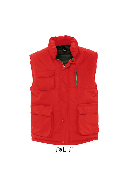 Жилет унисекс SOL’S VIPER. Стеганый воротник-стойка, множество карманов, отверстия для телефонной гарнитуры в кармане и на воротнике, суженная пройма рукавов для защиты от ветра, стягивающая резинка на талии. Материал: Микроволокно с пропиткой ПВХ, подкладка из полиэстера 190T, водонепроницаемая мягкая текстура.