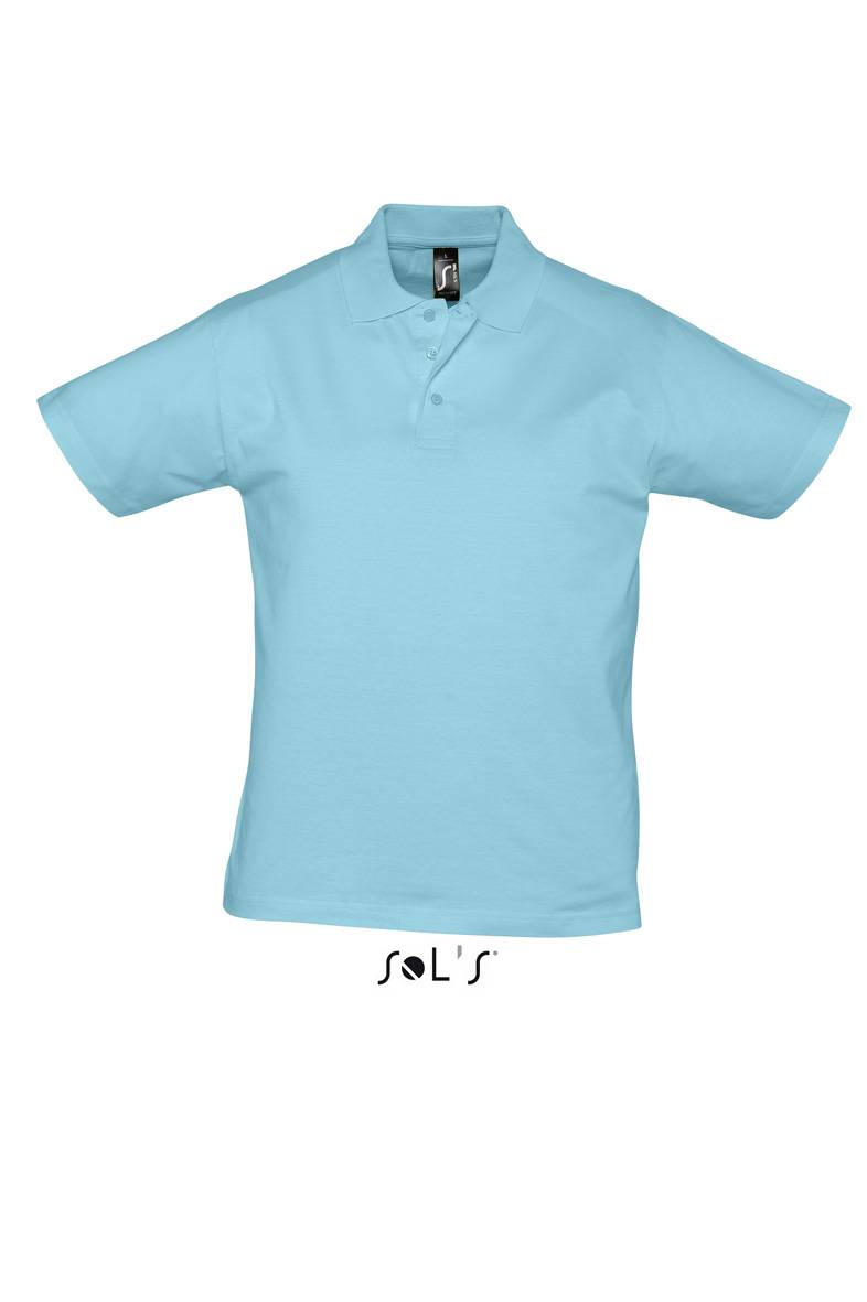 Рубашка поло мужская SOL’S PRESCOTT MEN. Стиль: модный. Воротник поло связан резинкой, планка с 3 пуговицами в тон, кроеный трикотаж. Запасная пуговица на внутренней боковой строчке изделия. Материал: ДЖЕРСИ 170, 100% полугребенной хлопок, укрепляющая тесьма по вороту, край воротника связан резинкой. Женский вариант: PRESCOTT WOMEN-11376