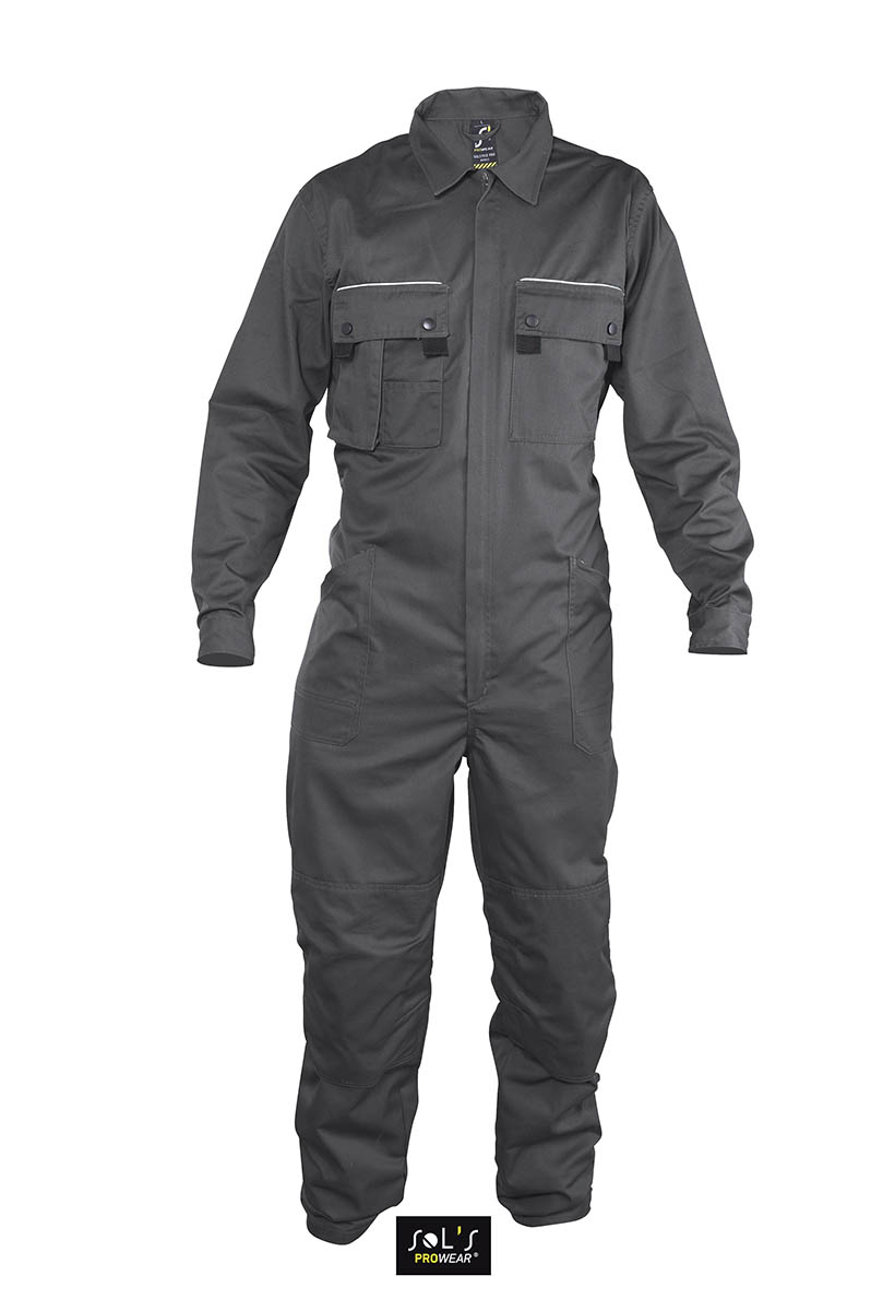 Рабочий комбинезон унисекс с двойной молнией SOL’S SOLSTICE PRO. 10 карманов, карманы с клапанами со светоотражающей полосой, специальные карманы для наколенников, эластичная стягивающая вставка на поясе сзади молния с двусторонним бегунком. Материал: ПОЛИХЛОПОК 240, 65% полиэстер, 35% хлопок.