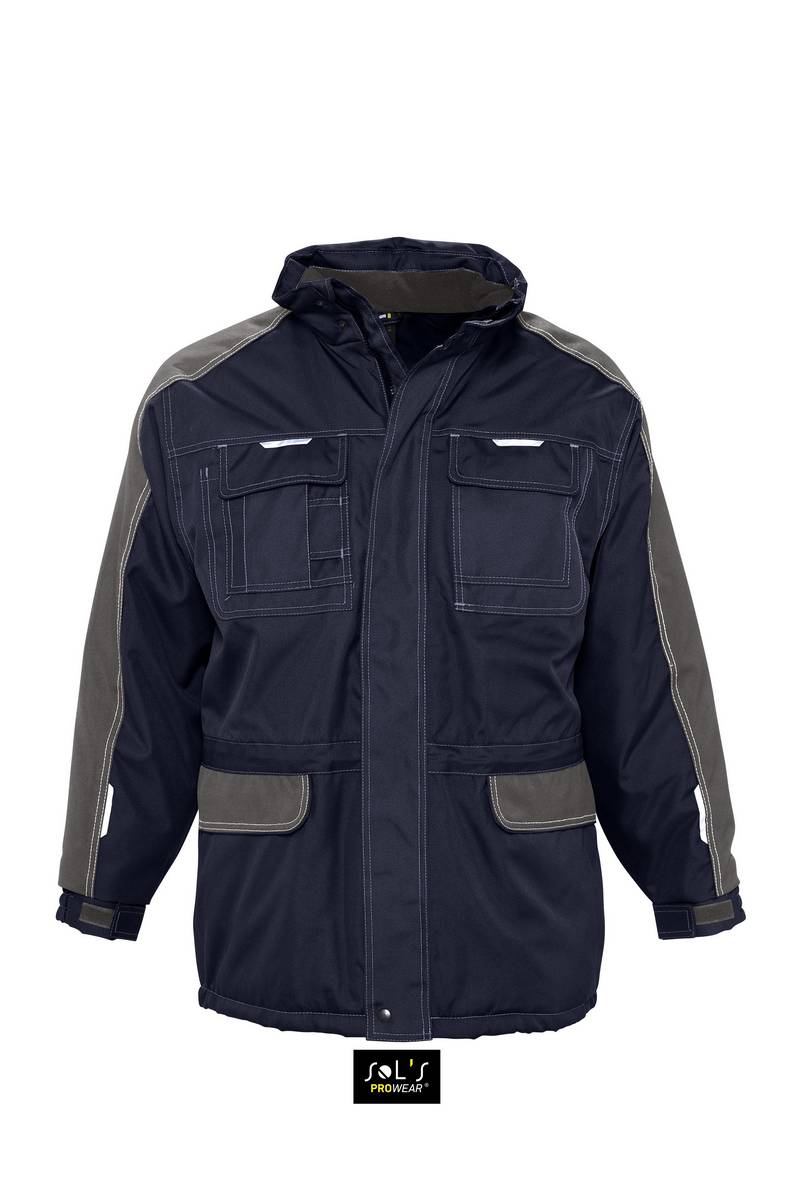 Куртка SOL’S FUSION PRO. Капюшон, складывающийся в воротник, застежка с планкой, литая молния в тон и кнопки, светоотражающие вставки на нагрудных карманах, манжетах и на спине; контрастная отделка: на плечах, рукавах и клапанах карманов эластичные манжеты на липучке, 8 карманов. Материал: ОКСФОРД 600D. Можно создать комплект с жилетом Wonder Pro.
