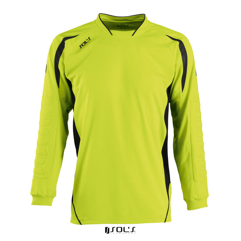 Футболка вратаря SOL’S AZTECA. Рукав реглан Контрастные перфорированные вставки по бокам и на рукавах Вышитый контрастной нитью логотип Длинный рукав с манжетами в резинку и налокотниками для защиты от ударов Удлиненная спинка с закруглением по низу. Материал: Гладкий полиэстер