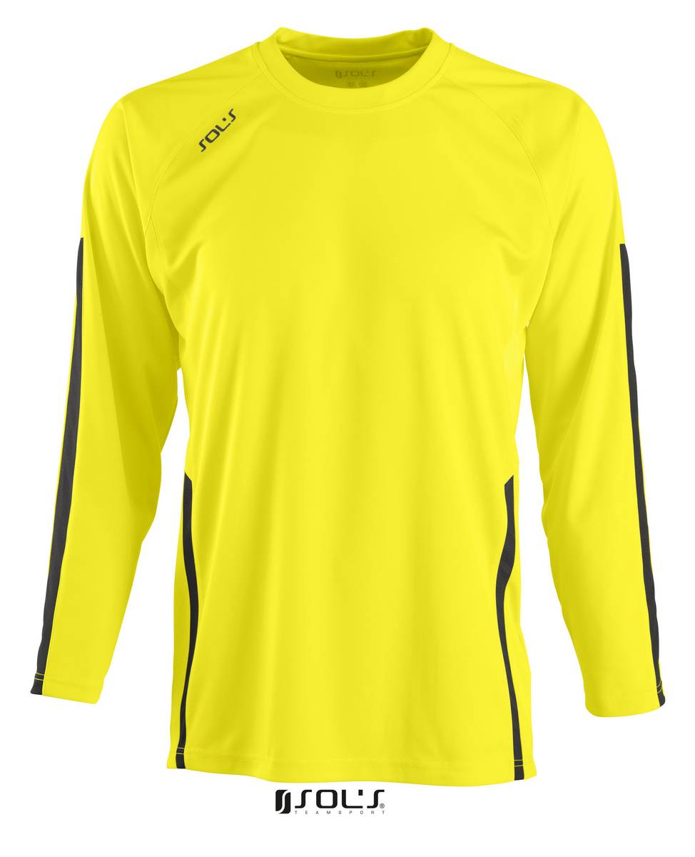 Футболка с длинным рукавом SOL’S WEMBLEY LSL. Модель с круглым воротом и рукавом реглан снабжена перфорированными вставками спереди, на спине и на рукавах. Задний край закруглен и слегка удлинен. Длинный рукав. Вышитый контрастной нитью логотип. Материал: Интерлок, полиэстер 100%. Удельный вес: 140 г/кв.м.