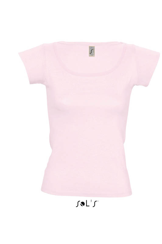 Футболка женская с американской проймой SOL’S MELROSE. Стиль: женственный. Глубокий вырез, приталенная модель, изделие выкроено из трикотажного полотна. Материал: ДЖЕРСИ 150. Полугребенной 100% хлопок.