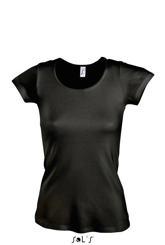 Женская футболка к круглым воротом SOL’S MOODY. Стиль: женственный и модный, облегающая модель, отделка по линии горловины. Материал: резинка 1X1 160. 100% хлопок. Укрепляющая тонкая резинка по вороту.