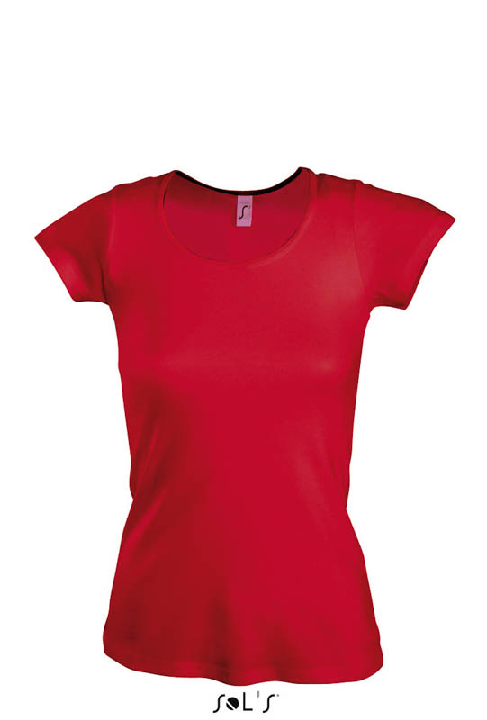 Женская футболка к круглым воротом SOL’S MOODY. Стиль: женственный и модный, облегающая модель, отделка по линии горловины. Материал: резинка 1X1 160. 100% хлопок. Укрепляющая тонкая резинка по вороту.