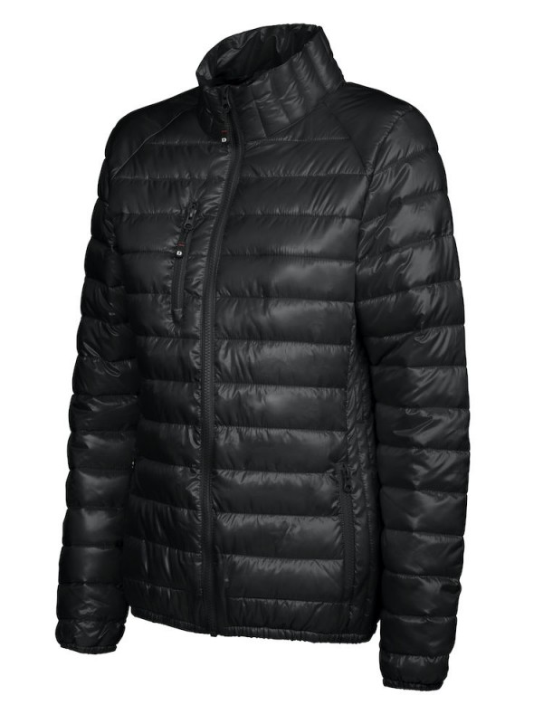Легкая женская стеганая куртка облегающего кроя на молнии с воротником-стойкой. Два передних и один нагрудный кармана на молнии YKK. Имеет два внутренних кармана. Манжеты и низ куртки на резинке. Приталенный силуэт.